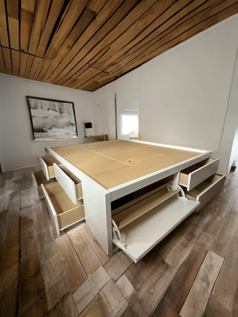 Transformá tu habitación con la Cama Mágica SOL, que combina 10 cajones, 2 bauleras y 1 zapatero en un solo mueble.