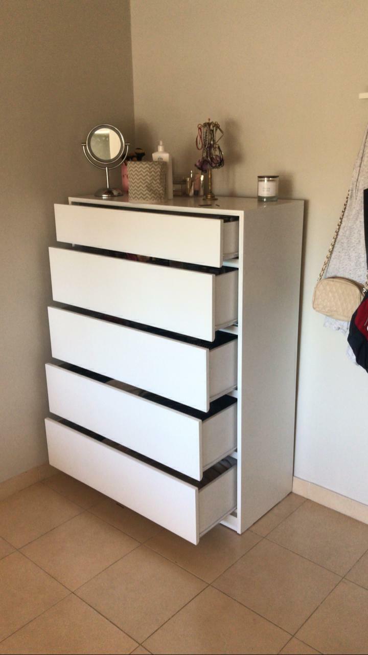 Este chifonier cuenta con 5 cajones amplios y correderas metálicas que garantizan un deslizamiento suave y fácil acceso a tus prendas.