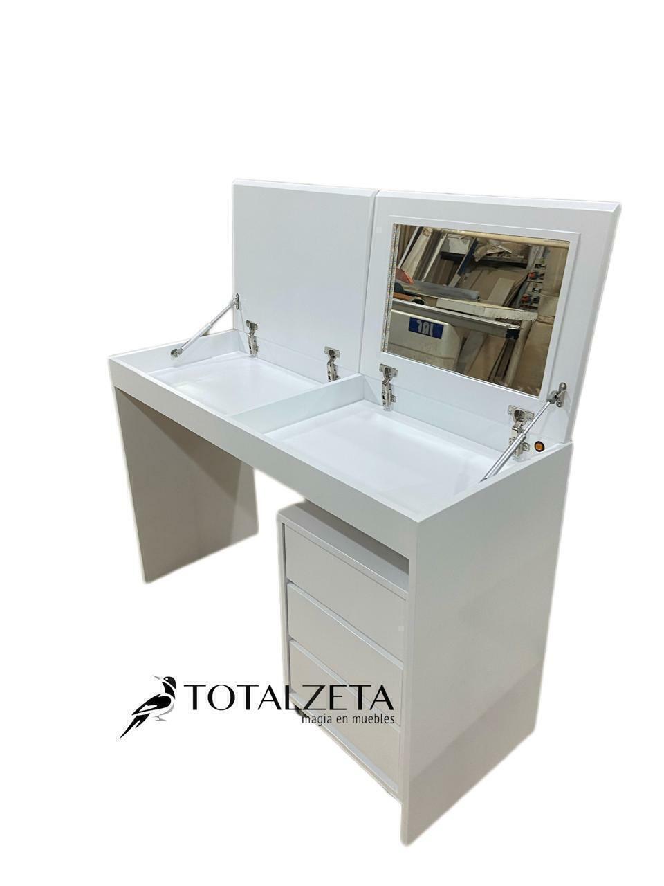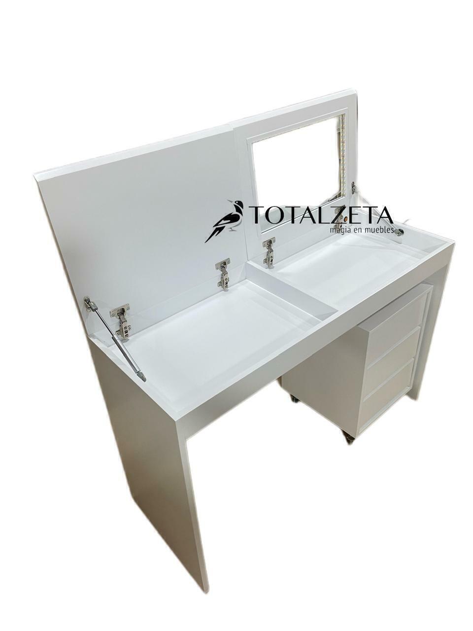 Este escritorio cuenta con múltiples compartimentos que te permitirán organizar todos tus productos de belleza y accesorios. No más desorden: tené todo al alcance de tu mano y disfrutá de un ambiente ordenado y chic.