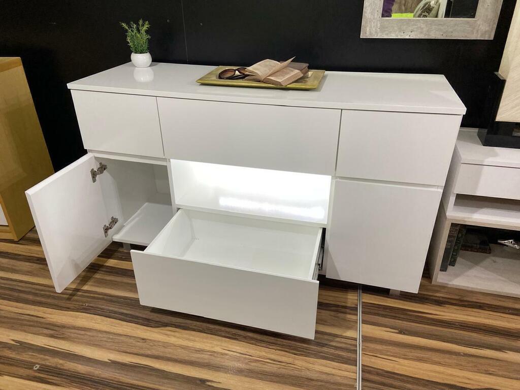 Vajillero con Luz LED, Cajones y Puertas - ¡El complemento perfecto para tu comedor! Este elegante vajillero cuenta con 4 cajones amplios y 2 puertas, brindando un espacio ideal para guardar tu vajilla y accesorios. - Fabricado en melamina de alta calidad, asegurando resistencia y un diseño moderno.